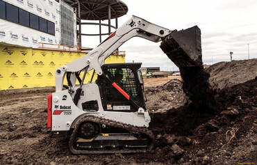 Предлагаем услуги мини-погрузчика Bobcat T650. Компактная модель с повышенной грузоподъемностью. Гусеницы, оснащенные резиновыми траками, дают возможность выполнения задач на сложным грунте (песок, грязь, болотистая почва).