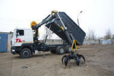 Кузов объемом 27-29 м3, манипулятор ОМТ-97, грейферный захват TL-6м