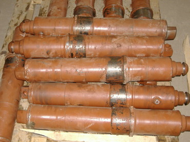 Ремонт гидроцилиндров — разборка узла, дефектовка деталей, механическая обработка поверхностей для устранения задиров и царапин, замена компонентов (штоков, гильз, уплотнителей, цапфы, поршней, проушин, буксов), опрессовка и тестирование собранного агрегата.